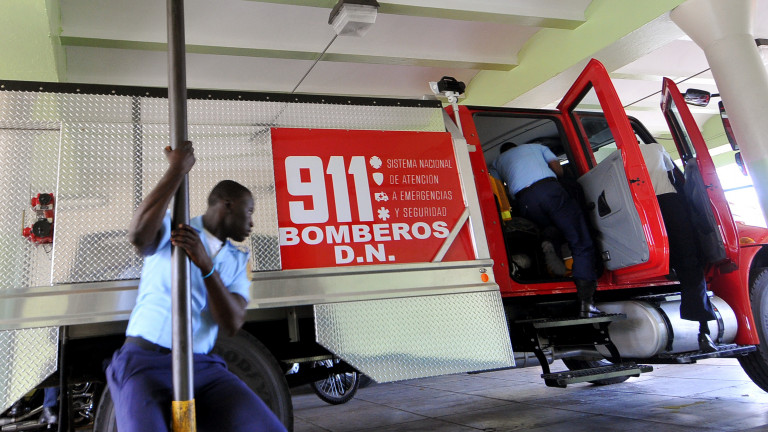 Personal del Cuerpo de Bomberos del Distrito Nacional durante un llamado de emergencia, un servicio disponible regularmente las 24 horas del día y los 7 días de la semana, y que también estará integrado al Sistema de Emergencias 9-1-1.