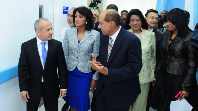 La esposa del Presidente de la República, señora Cándida Montilla de Medina, acompañada del ministro de Salud Pública, Freddy Hidalgo; el director del centro, Francisco Monegro Santos; Cristina Lizardo, senadora por la Provincia Santo Domingo y vicepresidente del Senado de la República; y Miguel Pimentel Kareh, director general OISOE, entre otros, durante inauguración del Instituto Nacional del Cáncer Rosa Emilia Sánchez Pérez de Tavares (INCART), en esta ciudad.