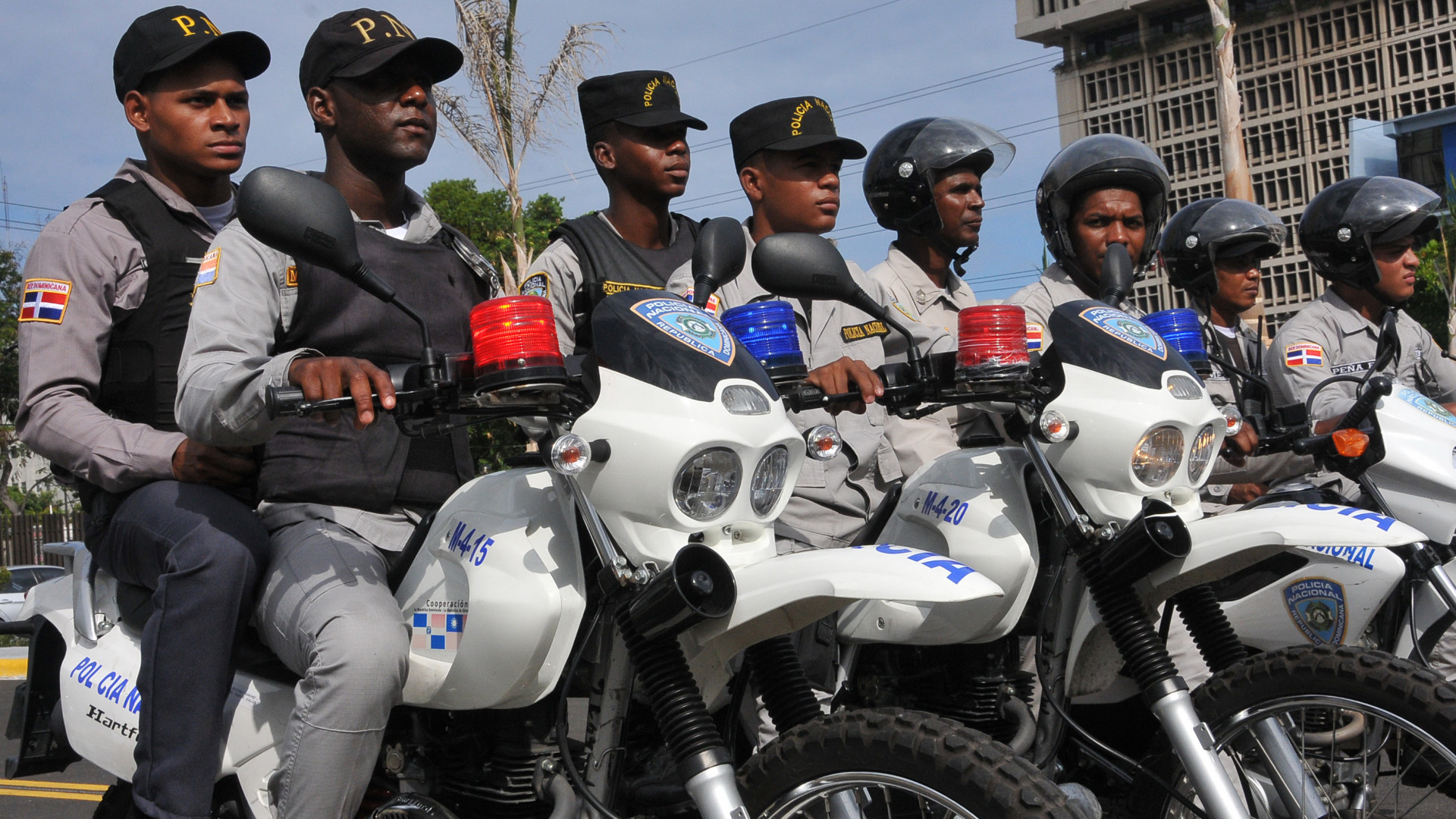 Agentes motorizados de la Policía Nacional (PN), una de las instituciones del Estado que participarán en apoyo al Sistema Nacional de Emergencias 9-1-1, cuya misión principal es mantener el orden y la seguridad ciudadana, una importante labor que todos debemos apoyar.