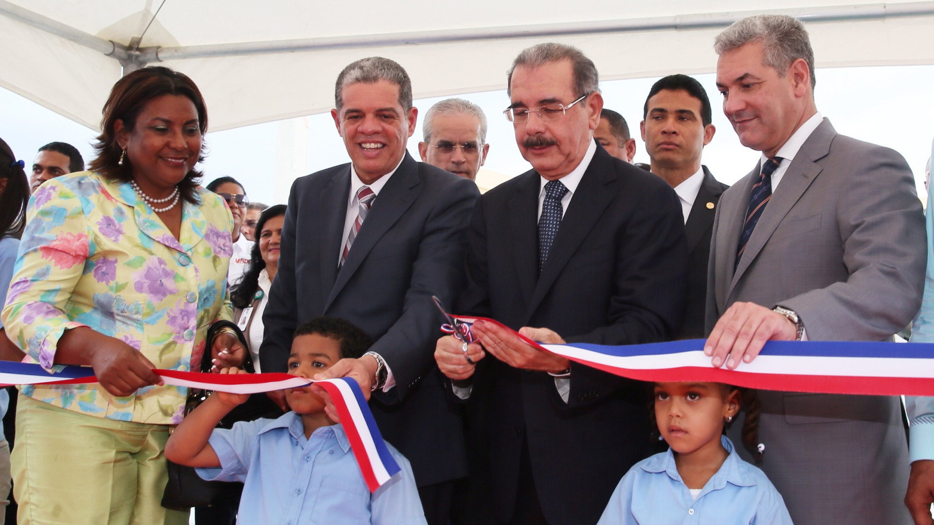 Con este corte de cinta, quedan oficialmente inaugurados los planteles escolares, por parte del Presidente Danilo Medina.