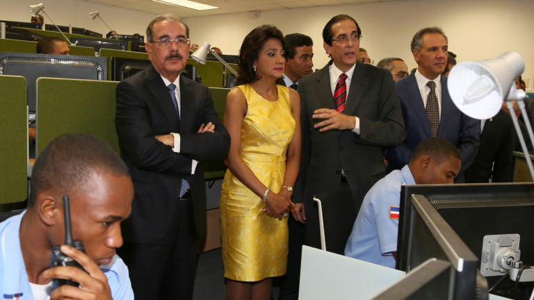 Tras concluir el acto protocolar, el presidente Medina cortó la cinta para dejar inaugurado el nuevo sistema y luego realizó un recorrido por las modernas instalaciones. Foto: Ángel Álvarez Rodríguez/Presidencia República Dominicana Nota de prensa: presidencia.gob.do/noticias/el-911-ya-esta-en-marcha Video YouTube: www.youtube.com/watch?v=OYMTzYsWAMs