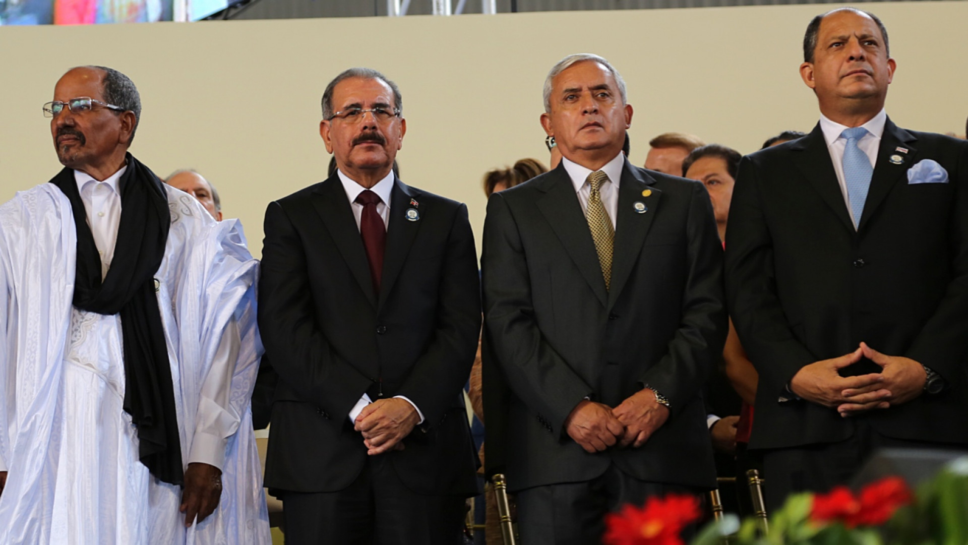 El presidente de la República dominicana, Danilo Medina Sánchez, junto a otros Jefes de Estados e invitados especiales presentes, durante sesión solemne de la Asamblea Legislativa, celebrada en el Anfiteatro del Centro Internacional de Ferias y Convenciones (CIFCO), de la República de El Salvador, por juramentación de Salvador Sánchez Cerén.