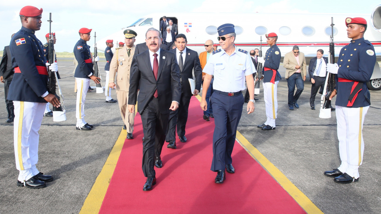 El presidente Danilo Medina, pisó tierra dominicana, junto a la reducida comitiva que le acompañó en la toma de posesión del nuevo presidente salvadoreño, profesor Salvador Sánchez Cerén. La ocasión fue oportuna para reiterar la invitación, previamente cursada a través de la Cancillería dominicana a los diferentes Jefes de Estados e invitados especiales, para la cumbre del Sistema de la Integración Centroamericana (SICA), a celebrarse en Punta Cana del 25 al 27 del mes en curso.