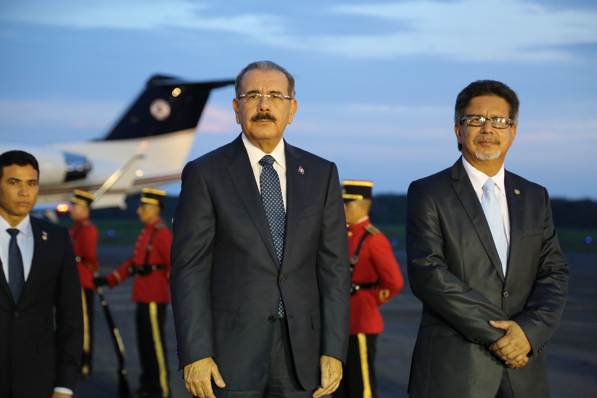 Presidente Danilo Medina fue recibido por el vicecanciller del país Centroamericano, Carlos Castaneda. Acompañan al Presidente en su viaje una reducida delegación integrada por ministros Administrativo de la Presidencia, José Ramón Peralta; de Hacienda, Simón Lizardo Mézquita y de Interior y Policía, José Ramón Fadul; el viceministro de Relaciones Exteriores, José Manuel Trullols;el superintendente de Seguros, Euclides Gutiérrez Félix; el jefe del Cuerpo de Seguridad Presidencial, mayor general Adán Cáceres Silvestre y el asistente personal del Mandatario, Carlos Pared Pérez.