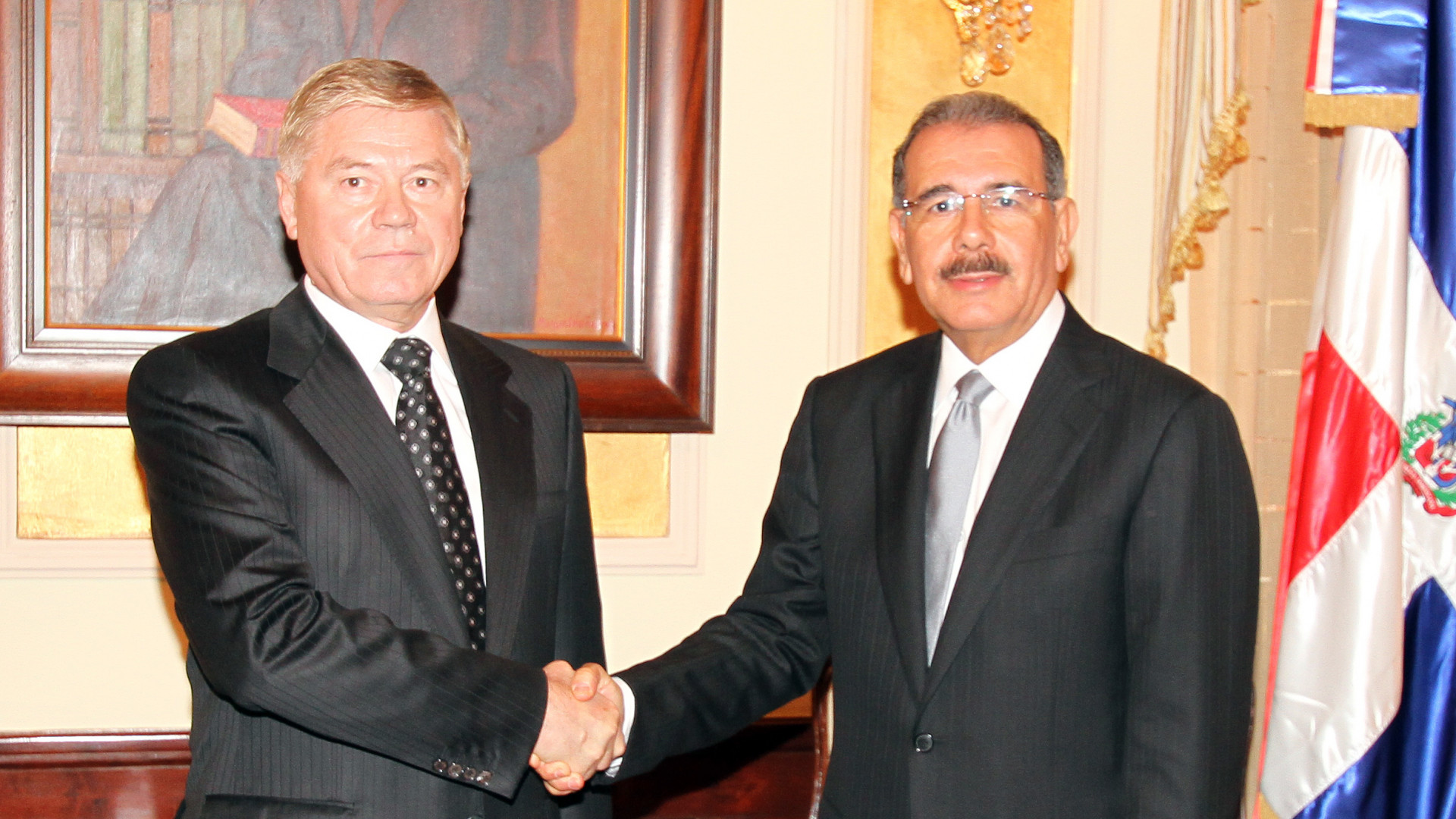 El presidente Danilo Medina al recibir este jueves la visita del presidente del Tribunal Supremo de la Federación Rusa, Vyacheslav M. Lebedev.