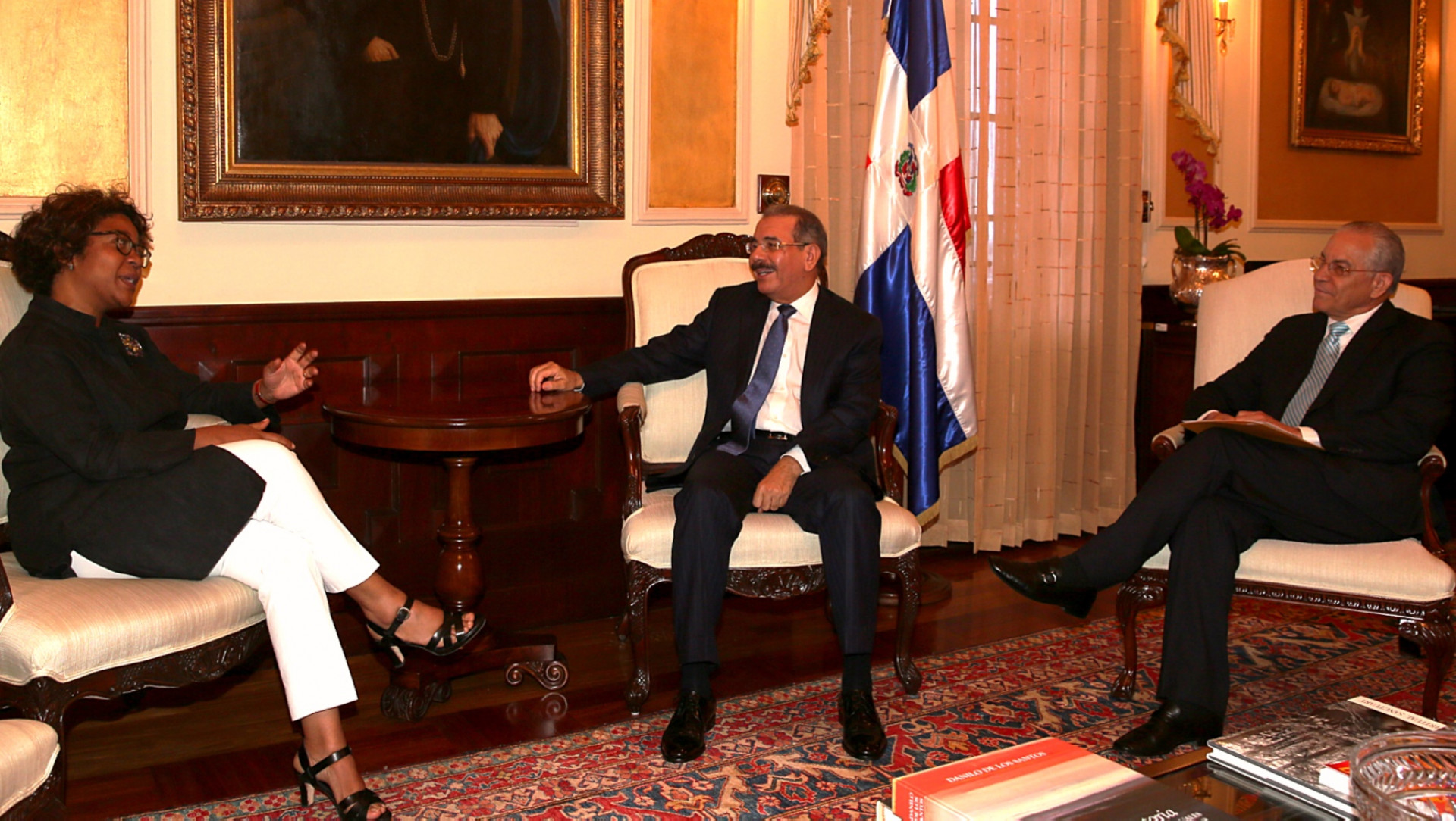 Participación del presidente de la República, Danilo Medina Sánchez, al recibir la visita de cortesía de la señora Josefina Stubbs, directora de la División de América Latina y el Caribe (ALC) del Fondo Internacional de Desarrollo Agrícola (FIDA), junto al director general de DIGECOOM, Antonio Vargas y el director del Sector Económico de esa institución, Emerson Vegazo. quienes trataron con el mandatario temas sobre los programas que desarrolla esa institución en el país y su lucha contra la pobreza, durante encuentro efectuado hoy en su despacho del Palacio Nacional.