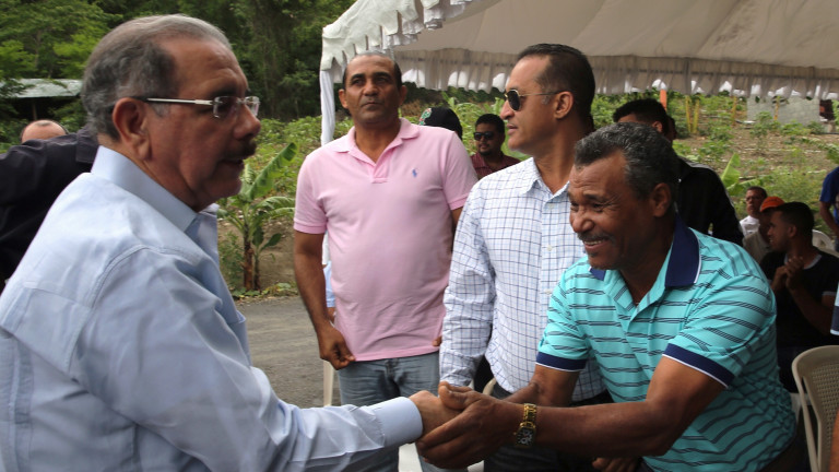 Presidente Danilo Medina Sánchez saluda productores de Ocoa, durante su visita sorpresa a miembros de la Cooperativa Agropecuaria Santa Cruz.