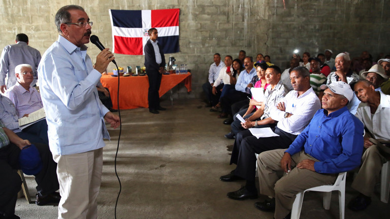 Danilo Medina durante encuentro con representantes de las asociaciones Municipalista Cristo Redentor y Los Desamparados de la Lechuza (ASOCADELE), quienes expusieron problemas en su producción y a los cuales también el mandatario aprobó financiamientos mediante el FEDA.