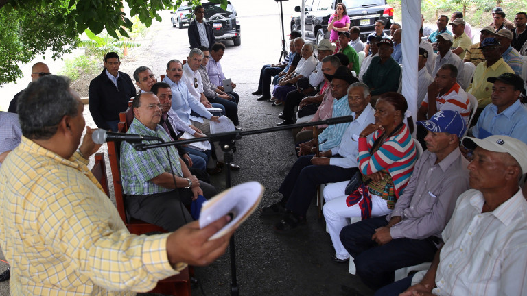 Dirigente de la Cooperativa Agropecuaria Santa Cruz, expone al presidente Medina problemas que confrontan con sus plantaciones. Luego de escuchar los planteamientos, el mandatario aprobó financiamientos mediante el FEDA para desarrollar la producción agrícola de la zona.