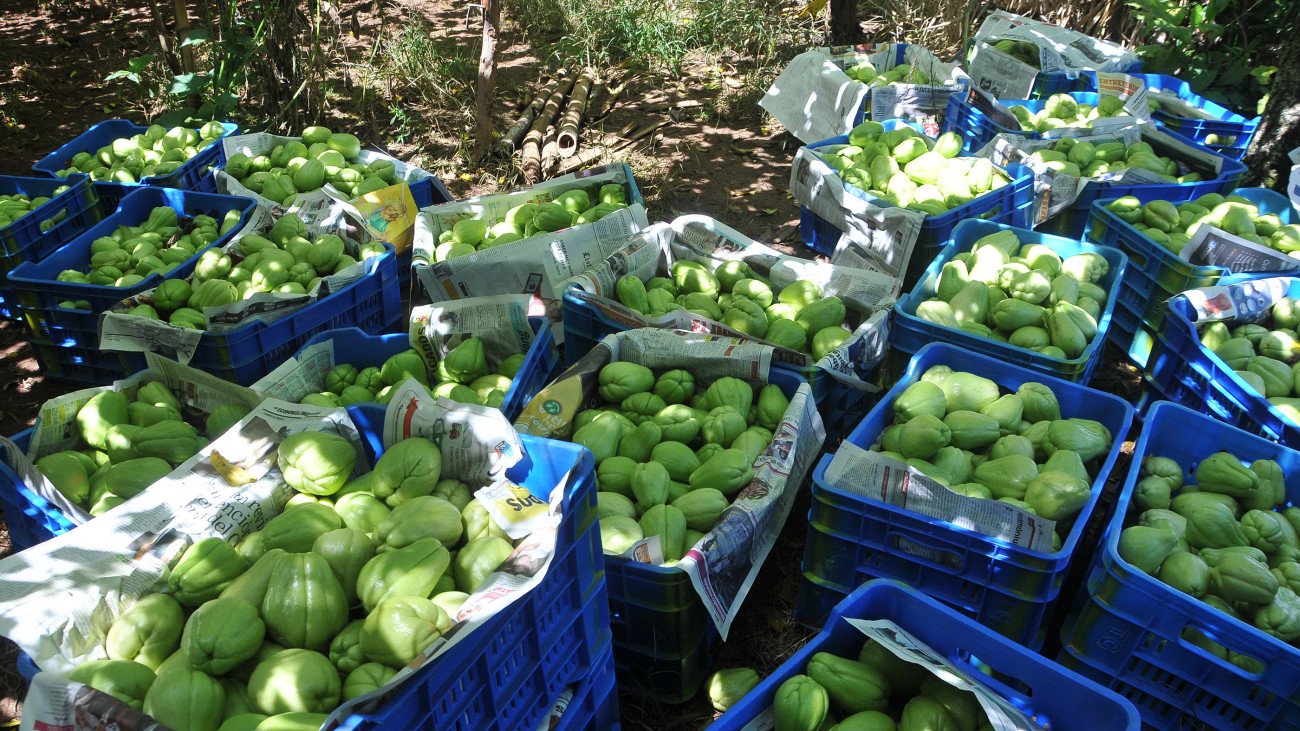 Muestra de tayotas cultivadas por productores agrícolas de Jarabacoa, gracias al apoyo financiero dispuesto por el presidente Danilo Medina en su pasada visita sorpresa. Para julio o agosto estarán en condiciones de exportar de 3 a 4 contenedores semanales.