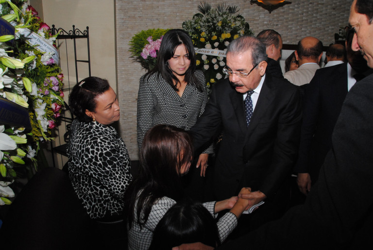 Presidente Danilo Medina junto a la viuda Griselda Gómez y familiares del ex Tesorero Nacional y Director de Presupuesto Rubén Peña Pichardo, en la Funeraria Blandino de la avenida Abraham Lincoln en esta capital.