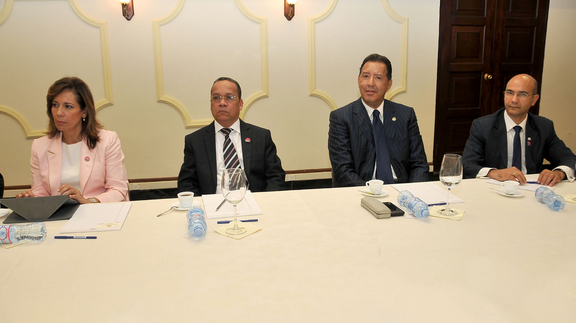 Integrantes de la Comisión de Veeduría Ciudadana del Instituto Nacional de Bienestar Estudiantil (INABIE), presentes durante encuentro con el ministro de la Presidencia Gustavo Montalvo, en el Salón Hermanas Mirabal de la Casa de Gobierno.
