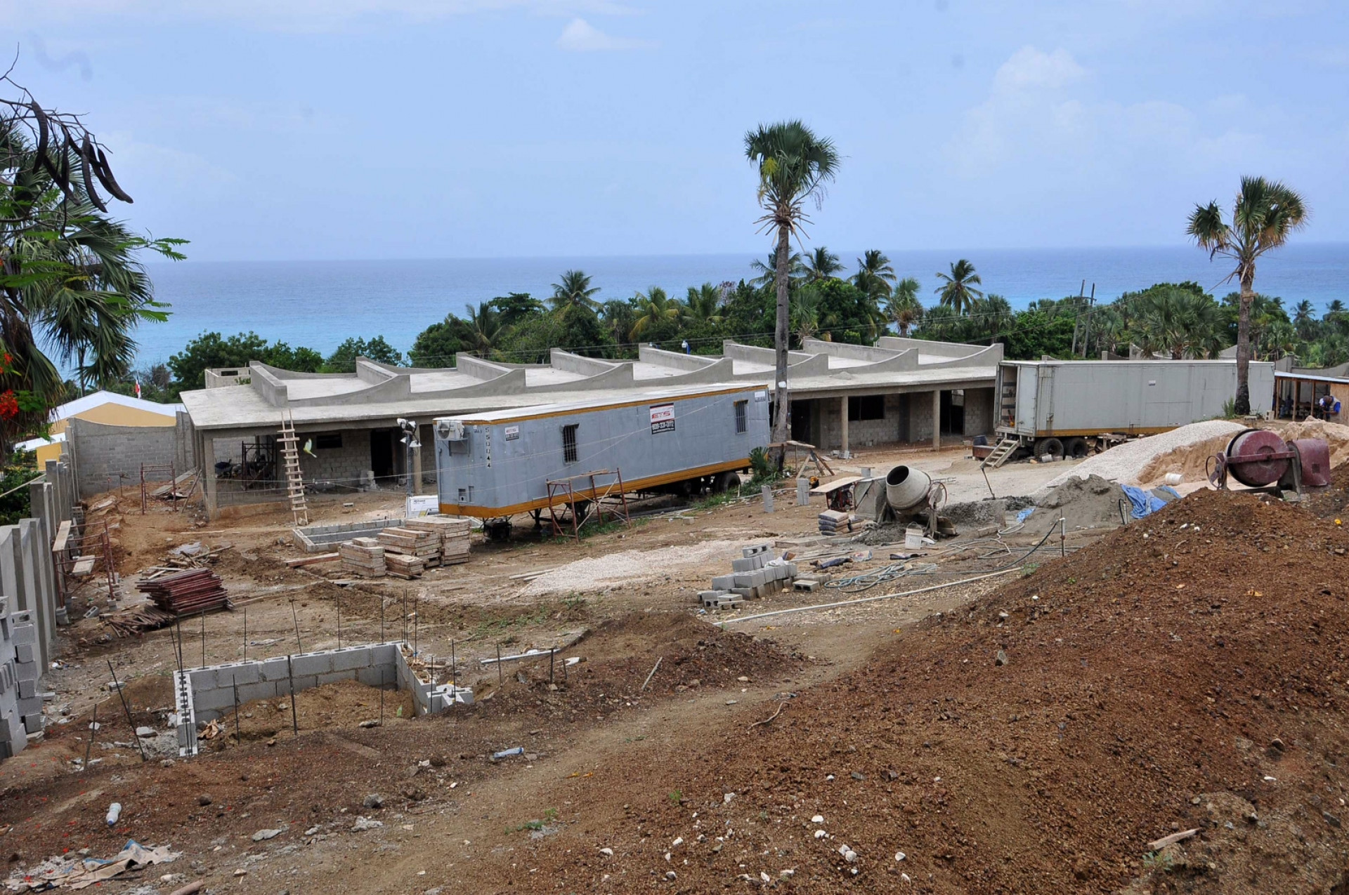Vista de los avances en trabajos de construcción de la Escuela-Taller de Artesanía del Distrito Municipal Bahoruco, en Barahona, con la cual se espera un impacto de manera significativa en el mercado de los artesanos de la piedra Larimar en esta zona.