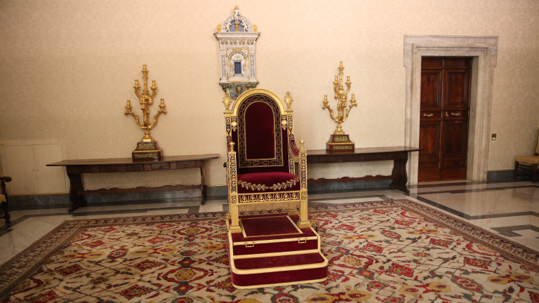 Silla papal con adornos de oro que el papa Francisco cambió por una silla de madera.