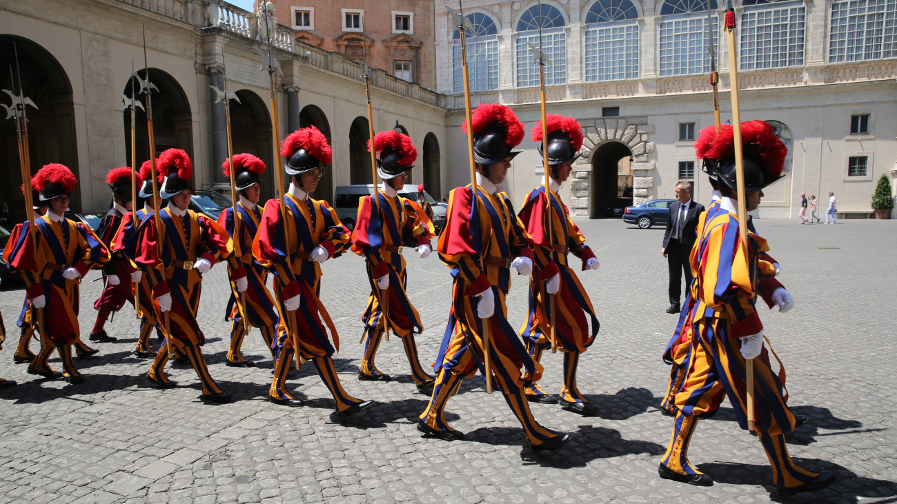 Integrantes de la Guardia Suiza Pontificia, cuerpo militar encargado de la seguridad del Estado de la Ciudad del Vaticano.