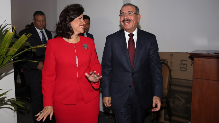 El presidente de la República, Danilo Medina, y la vicepresidenta Margarita Cedeño de Fernández, a su llegada al acto de apertura del Foro: Perspectivas de la Protección Social en América Latina, que forma parte de los trabajos de la Presidencia Pro-témpore que ocupa el país del Sistema de la Integración Centroamericana (SICA), celebrado los días 17 y 18 de junio de 2014 en el Hotel Sheraton de Santo Domingo.