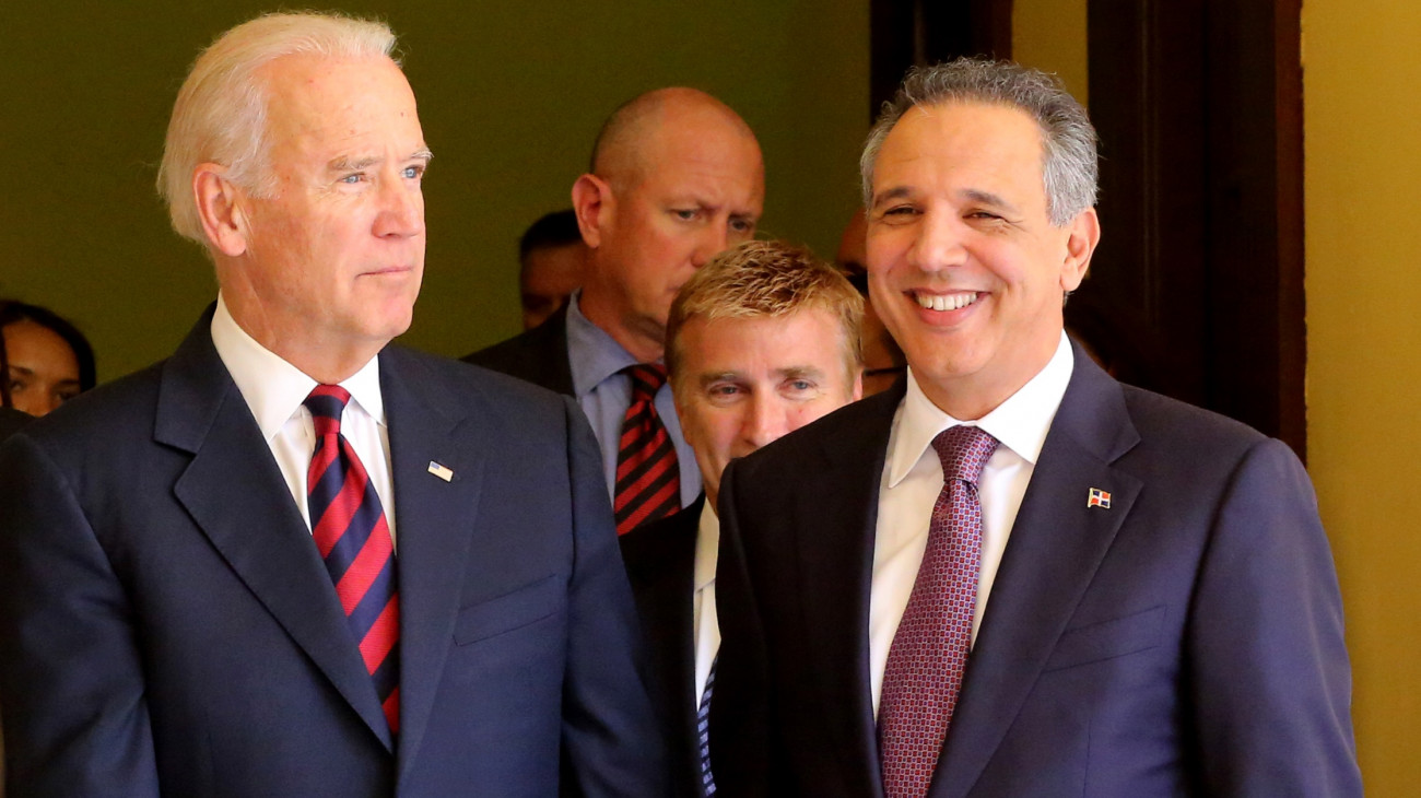 El vicepresidente de los Estados Unidos, Joseph Biden, el ministro Administrativo de la Presidencia, José Ramón Peralta; y el embajador de los Estados Unidos en República Dominicana, y James "Wally" Brewster.