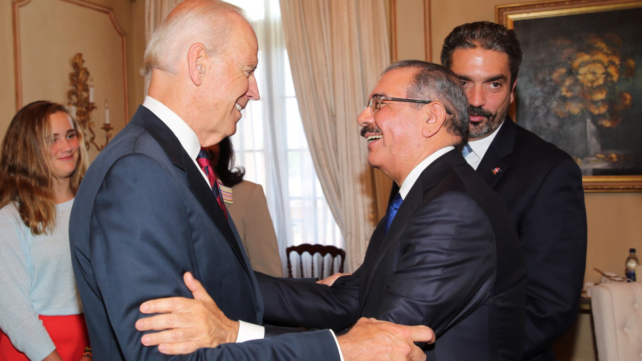 El presidente de la República, Danilo Medina, y el vicepresidente de los Estados Unidos, Joseph Biden, conversan de manera cordial en el Palacio Nacional de Santo Domingo, el jueves 19 de junio de 2014, luego de la reunión que sostuvieron en la que pasaron revista a la relación bilateral de sus naciones en un diálogo franco, abierto y respetuoso entre amigos. Foto: Luis Ruiz Tito/Presidencia República Dominicana Nota de prensa: presidencia.gob.do/comunicados/danilo-medina-y-joe-biden-... Nota de prensa: presidencia.gob.do/comunicados/danilo-medina-y-joe-biden-... Enlace: presidencia.gob.do/comunicados/vicepresidente-de-estados-...