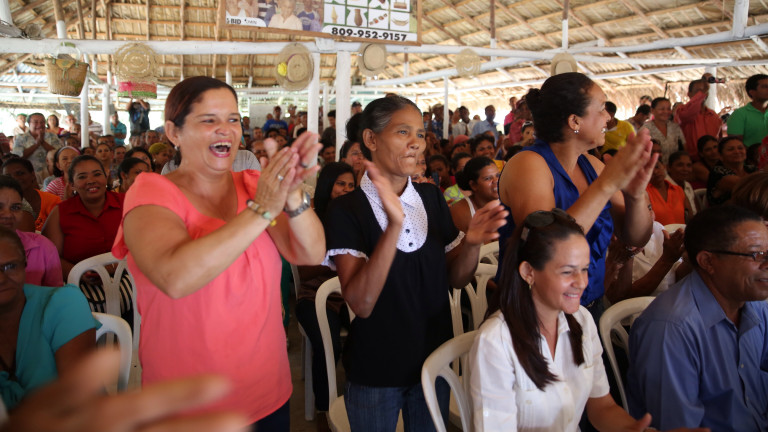 Las integrantes de la Asociación de Mujeres Teje Arte de Guano (AMTAGUANO) en Mata del Jobo, Santiago Rodríguez, recibieron con júbilo al presidente Danilo Medina, quien las felicitó por el proyecto de artesanía de guano, y les anunció que con el apoyo del Fondo Especial para el Desarrollo Agropecuario (FEDA) las ayudará a echarlo hacia adelante para que no solamente produzcan cerones, sino otras artesanías.