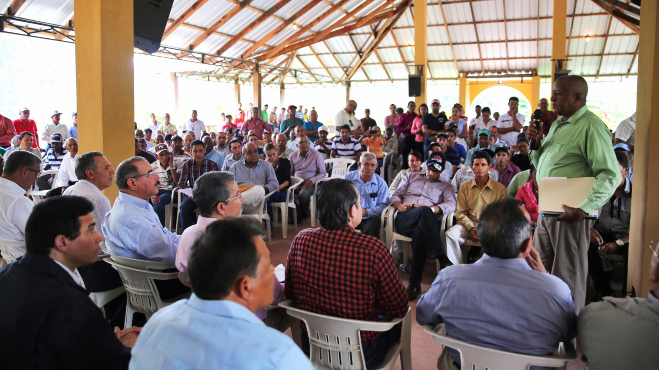 Juan Ignacio Jiménez, presidente de la Asociación de Agricultores Don Santo Carrasco, expuso al presidente Danilo Medina que necesitan apoyo para iniciar un proyecto de ganadería ovina, cuya institución cuenta actualmente con 109 socios.