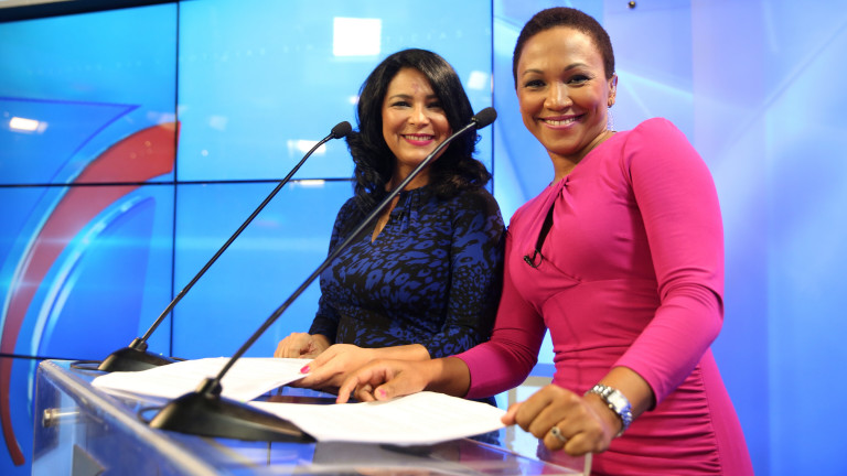Periodistas Patricia Solano y Edith Febles en el acto inaugural de las instalaciones del Grupo SIN que contó con la asistencia del presidente Danilo Medina.