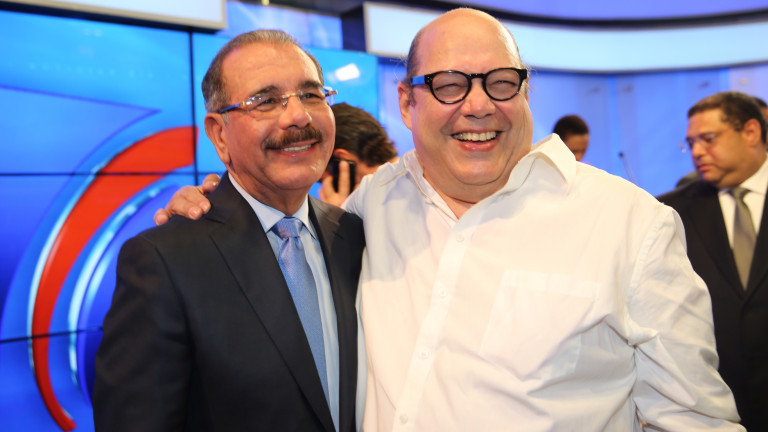 El presidente Danilo Medina comparte con el cantautor Víctor Víctor en el acto de inauguración de las nuevas instalaciones del Grupo SIN.