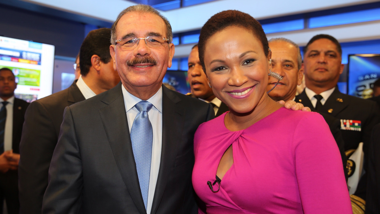 El presidente Danilo Medina comparte con la periodista Edith Febles en la inauguración de las nuevas instalaciones del Grupo SIN.