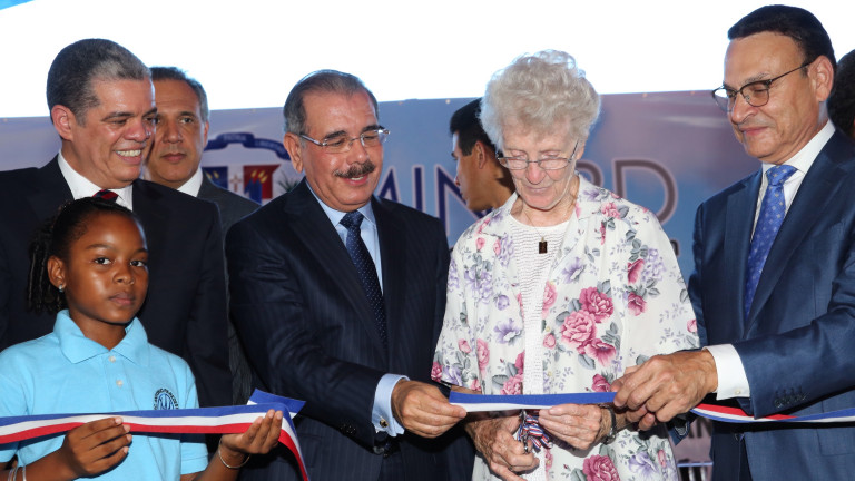El presidente Danilo Medina pidió a sor Leonor Gibb realizar el corte de la cinta para dejar inauguradas las aulas.