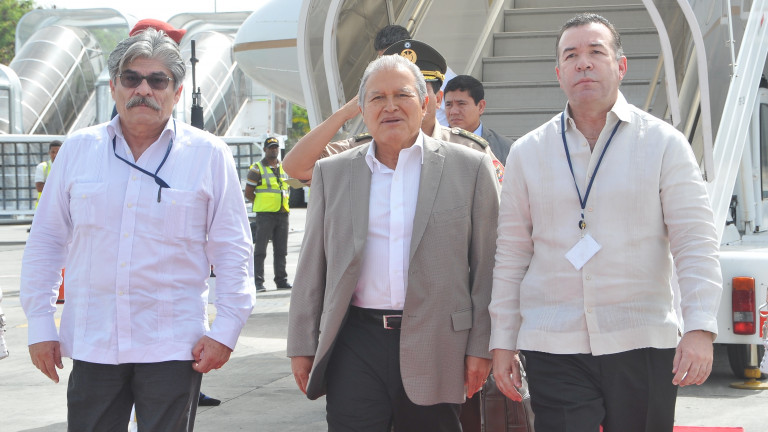 El presidente de El Salvador, Salvador Sánchez Cerén, a su llegada al Aeropuerto Internacional de Punta Cana, para su participación en la XLIII Cumbre de Jefes de Estado y de Gobierno del Sistema de la Integración Centroamericana (SICA).