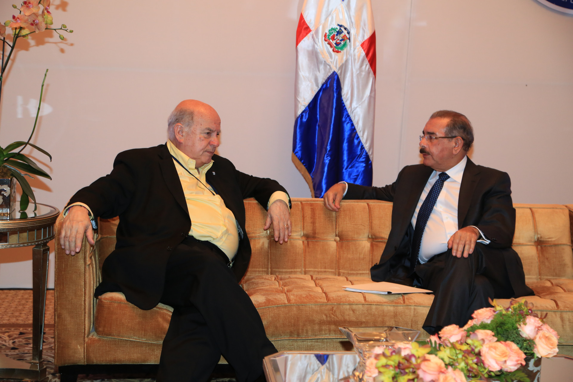 El presidente Medina y el secretario general de la Organización de Estados Americanos (OEA), José Miguel Insulza, conversan sobre diferentes tópicos, durante la XLIII Cumbre de Jefes de Estado y de Gobierno del SICA en Punta Cana, y que estará bajo la dirección de la Presidencia Pro Témpore de República Dominicana.