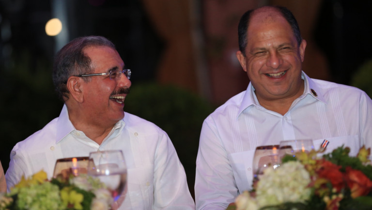 El presidente Danilo Medina comparte con el mandatario de Costa Rica, Luis Guillermo Solís, durante la cena y espectáculo cultural en honor a los Jefes de Estado y de Gobierno de los Estados miembros del Sistema de la Integración Centroamericana (SICA) y sus respectivas delegaciones.