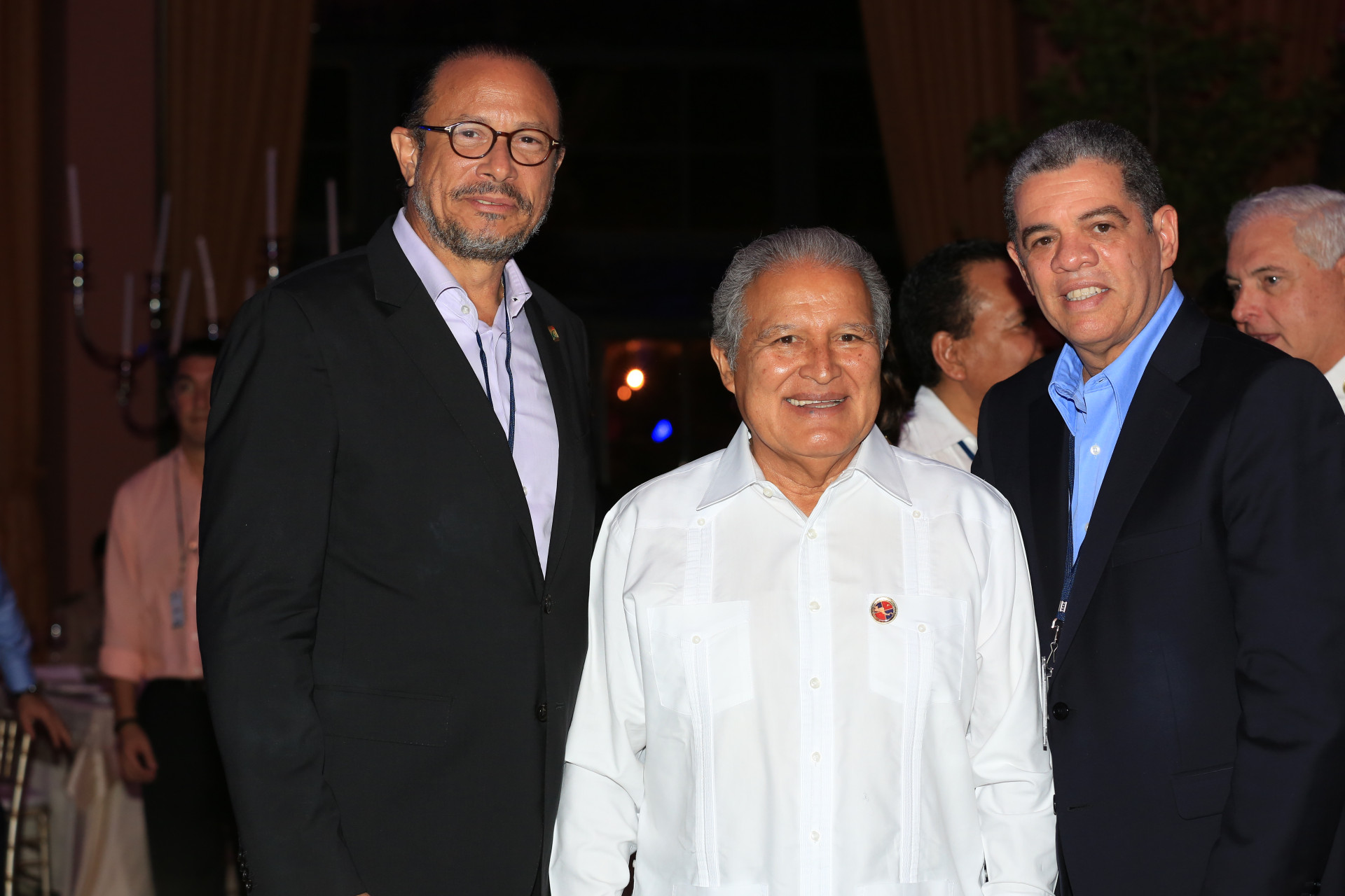 El presidente de El Salvador, Salvador Sánchez Cerén, comparte con los ministros dominicanos de Cultura, José Antonio Rodríguez; y de Educación, Carlos Amarante Baret, durante la cena y espectáculo cultural ofrecidos por el mandatario Danilo Medina en honor a los Jefes de Estado y de Gobierno de los Estados Miembros del Sistema de la Integración Centroamericana, SICA y sus respectivas delegaciones.