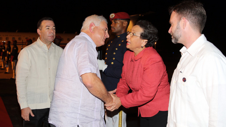 El presidente de Panamá, Ricardo Martinelli, a su llegada al Aeropuerto Internacional de Punta Cana, para su participación en la XLIII Cumbre de Jefes de Estado y de Gobierno del Sistema de la Integración Centroamericana (SICA).
