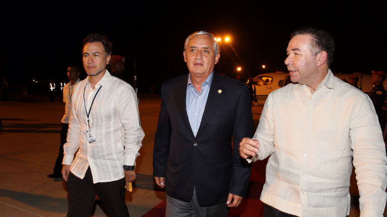 El presidente de Guatemala, Otto Pérez Molina, a su llegada al Aeropuerto Internacional de Punta Cana para su participación en la XLIII Cumbre de Jefes de Estado y de Gobierno del Sistema de la Integración Centroamericana (SICA).