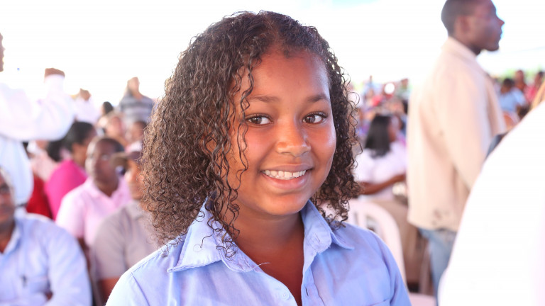 Jarolyn Lara, estudiante de el 8vo grado en la escuela Ercilia Pepín. Se confiesa feliz por su nuevo plantel educativo.