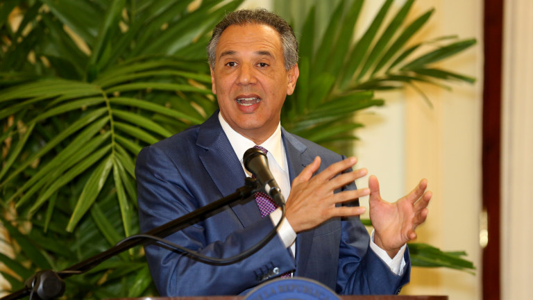 El ministro Administrativo de la Presidencia, José Ramón Peralta, expresa su discurso durante el acto de la firma del acuerdo entre el Gobierno de la República Dominicana y el Programa de las Naciones Unidas para el Desarrollo (PNUD) para evaluar el impacto de las visitas sorpresa del presidente Danilo Medina, celebrado en el Salón Verde del Palacio Nacional, el 3 de julio de 2014. Manifestó que las visitas son sorpresa para quienes las reciben, pero no son actividades improvisadas, sino que obedecen a un orden de coordinación previa y posterior, en las que interactúan 27 instituciones.