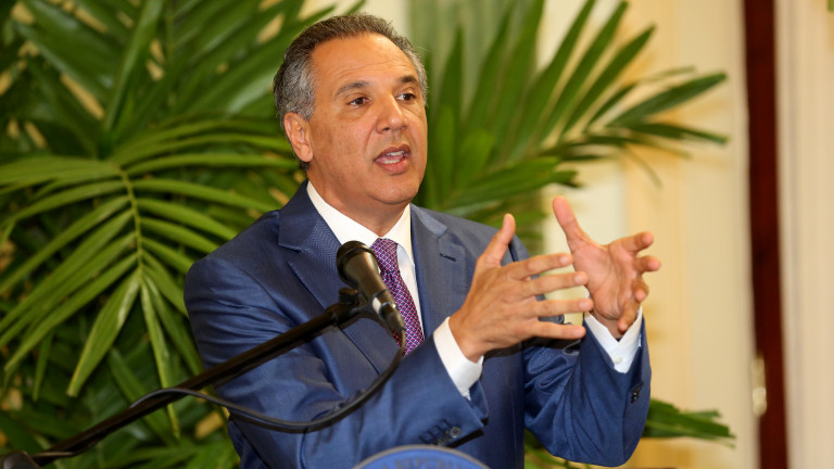 El ministro Administrativo de la Presidencia, José Ramón Peralta, expresa su discurso durante el acto de la firma del acuerdo entre el Gobierno de la República Dominicana y el Programa de las Naciones Unidas para el Desarrollo (PNUD) para evaluar el impacto de las visitas sorpresa del presidente Danilo Medina, celebrado en el Salón Verde del Palacio Nacional, el 3 de julio de 2014, donde resaltó que el Gobierno ofrece una mano amiga en la puesta en marcha de diferentes proyectos.