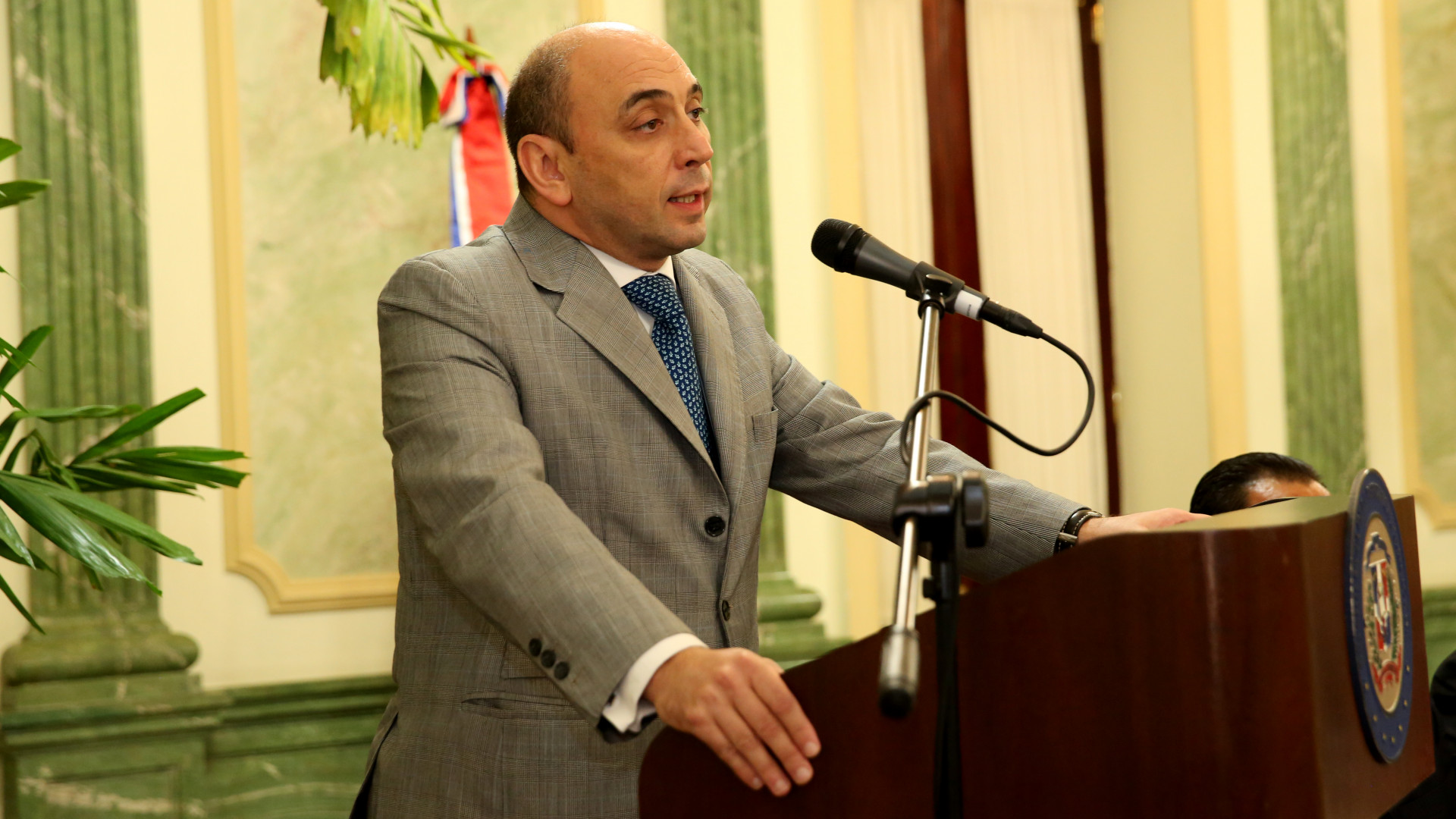 Lorenzo Jiménez de Luis, representante del PNUD en la República Dominicana, expresa su discurso en el acto de firma del acuerdo entre el Gobierno de la República Dominicana y el Programa de las Naciones Unidas para el Desarrollo (PNUD) para evaluar el impacto de las visitas sorpresa del presidente Danilo Medina, celebrado en el Salón Verde del Palacio Nacional, el 3 de julio de 2014, Dijo que se trata de un proyecto sin precedentes, que involucrará no solo a las Naciones Unidas, sino a la FAO, y otros organismos regionales.