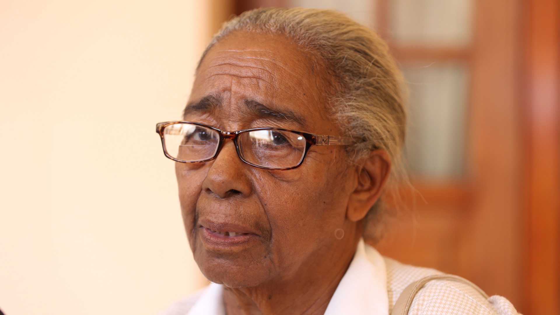 Una de las beneficiarias de las visitas sorpresa del presidente Danilo Medina que asistió al acto de firma del acuerdo entre el Gobierno de la República Dominicana y el Programa de las Naciones Unidas para el Desarrollo (PNUD) para medir el impacto de estas iniciativas, celebrado en el Salón Verde del Palacio Nacional, el 3 de julio de 2014.