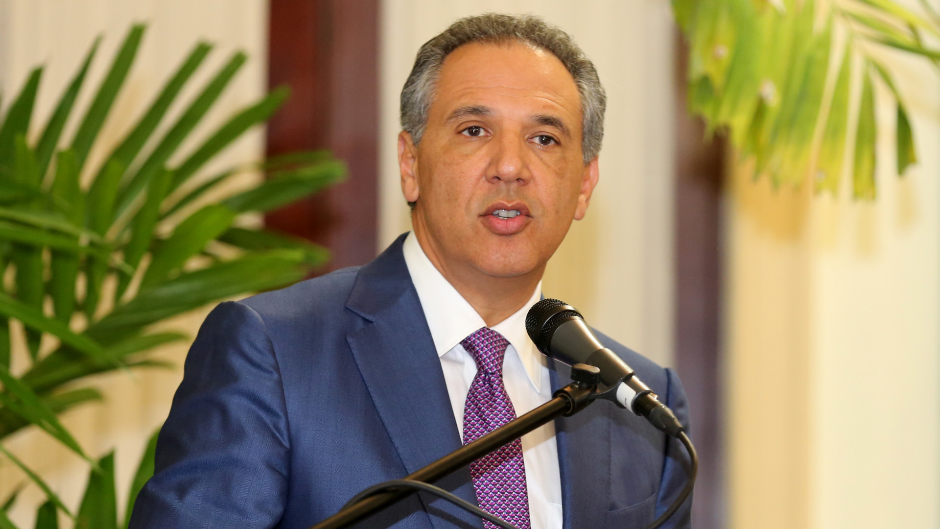 El ministro Administrativo de la Presidencia, José Ramón Peralta, expresa su discurso durante el acto de la firma del acuerdo entre el Gobierno de la República Dominicana y el Programa de las Naciones Unidas para el Desarrollo (PNUD) para evaluar el impacto de las visitas sorpresa del presidente Danilo Medina, celebrado en el Salón Verde del Palacio Nacional, el 3 de julio de 2014. “Hasta el momento, fruto de esas visitas el Presidente ha asumido 451 compromisos, que se concretan en 251 proyectos productivos y 200 proyectos comunitarios”, explicó.