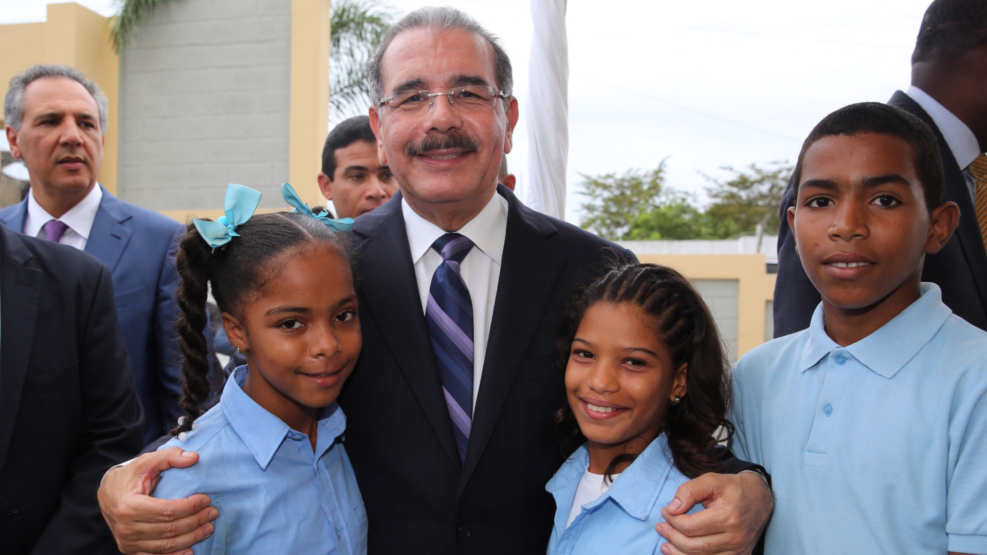 El presidente Danilo Medina junto estudiantes de los planteles inaugurados en el día de hoy.