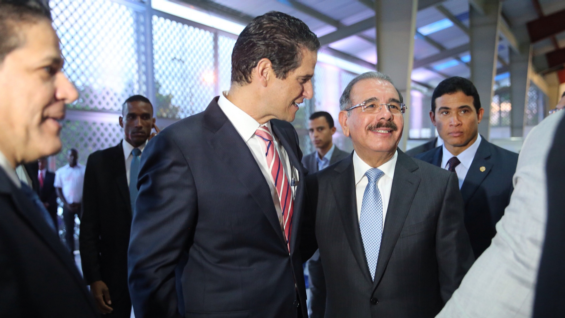 El presidente Danilo Medina es recibido por miembros de la familia Villanueva, a su llegada al acto de inauguración de las nuevas instalaciones de Ecomotors, del Grupo Viamar. Foto: Ángel Álvarez Rodríguez/Presidencia República Dominicana