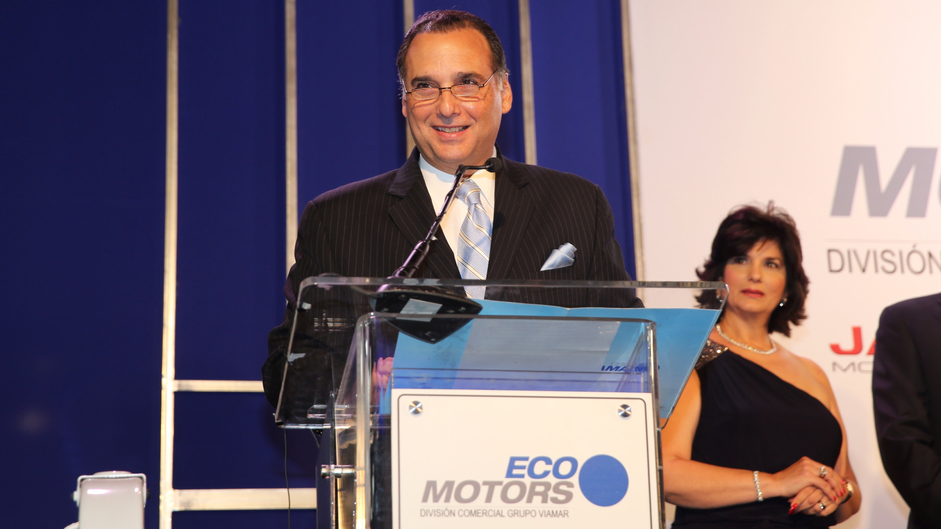 Fernando Eugenio Villanueva Sued, vicepresidente ejecutivo del Grupo Viamar, pronucnia las palabras centrales del acto de inauguración de las nuevas instalaciones de Ecomotors, división de vehículos comerciales de Viamar.
