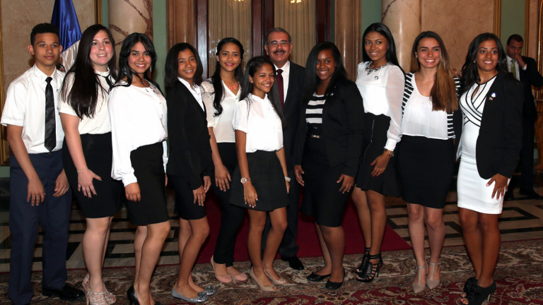 Presidente Medina recibe estudiantes dominicanos meritorios de escuelas NY