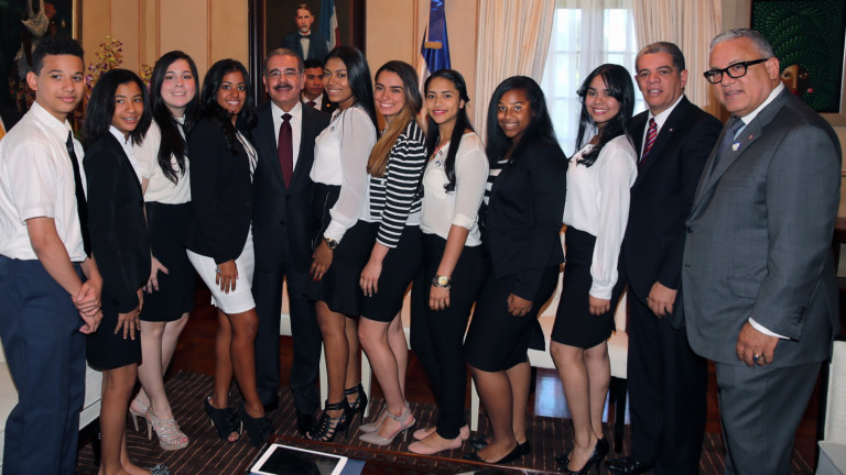 Presidente Medina recibe estudiantes dominicanos meritorios de escuelas NY