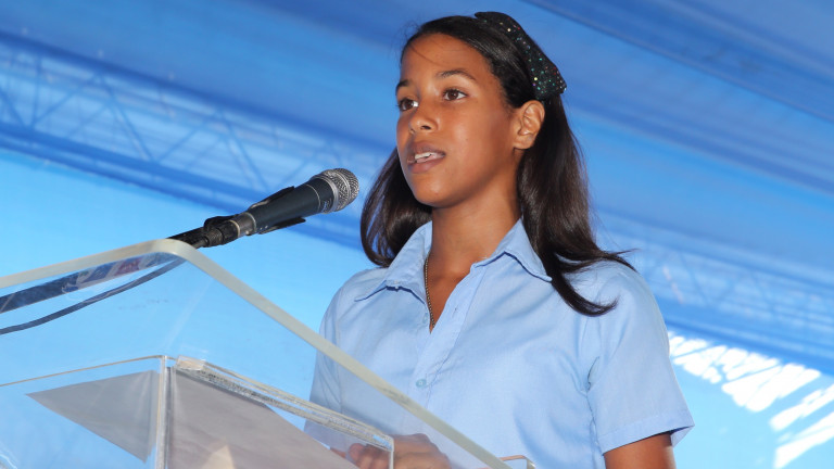 Estudiante Bibel Herrera Batista, al pronuncia las palabras de agradecimiento en nombre de sus compañeros.