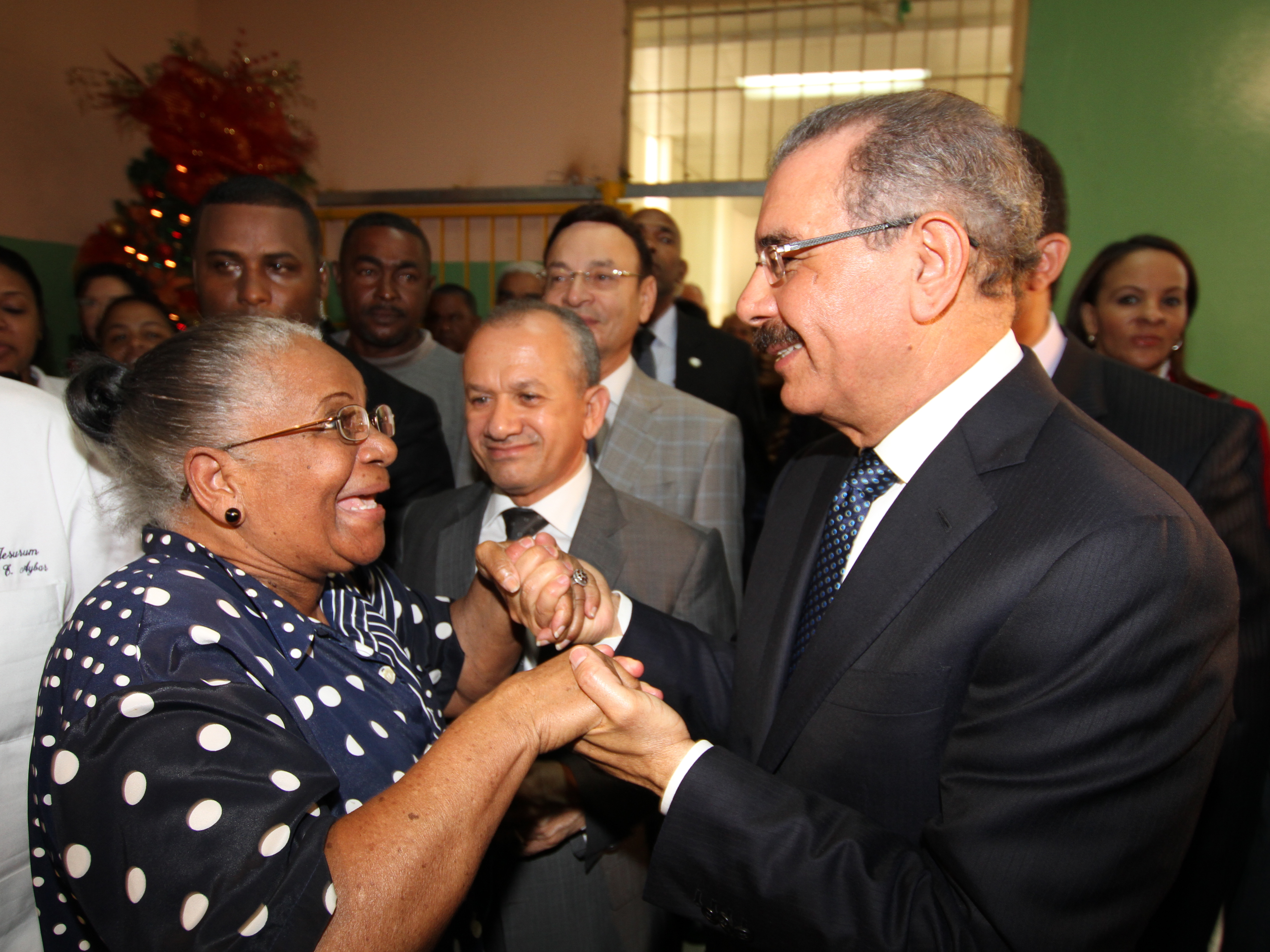 El presidente Medina fue recibido con marcada alegría y apreciable entusiasmo de los presentes, durante su Visita sorpresa al Hospital Dr. Luis Eduardo Aybar, 6 de diciembre de 2012.