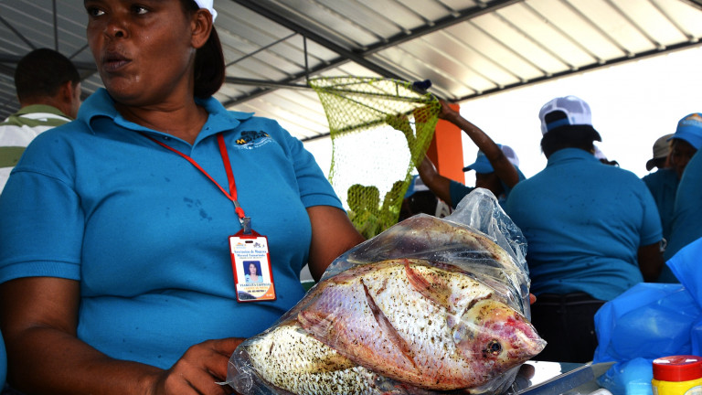 Venden su pescado, fresco, fresquito, acabado de salir del estanque, limpio, pero también sazonado, listo para freir o cocinarlo guisado. Sabroso.