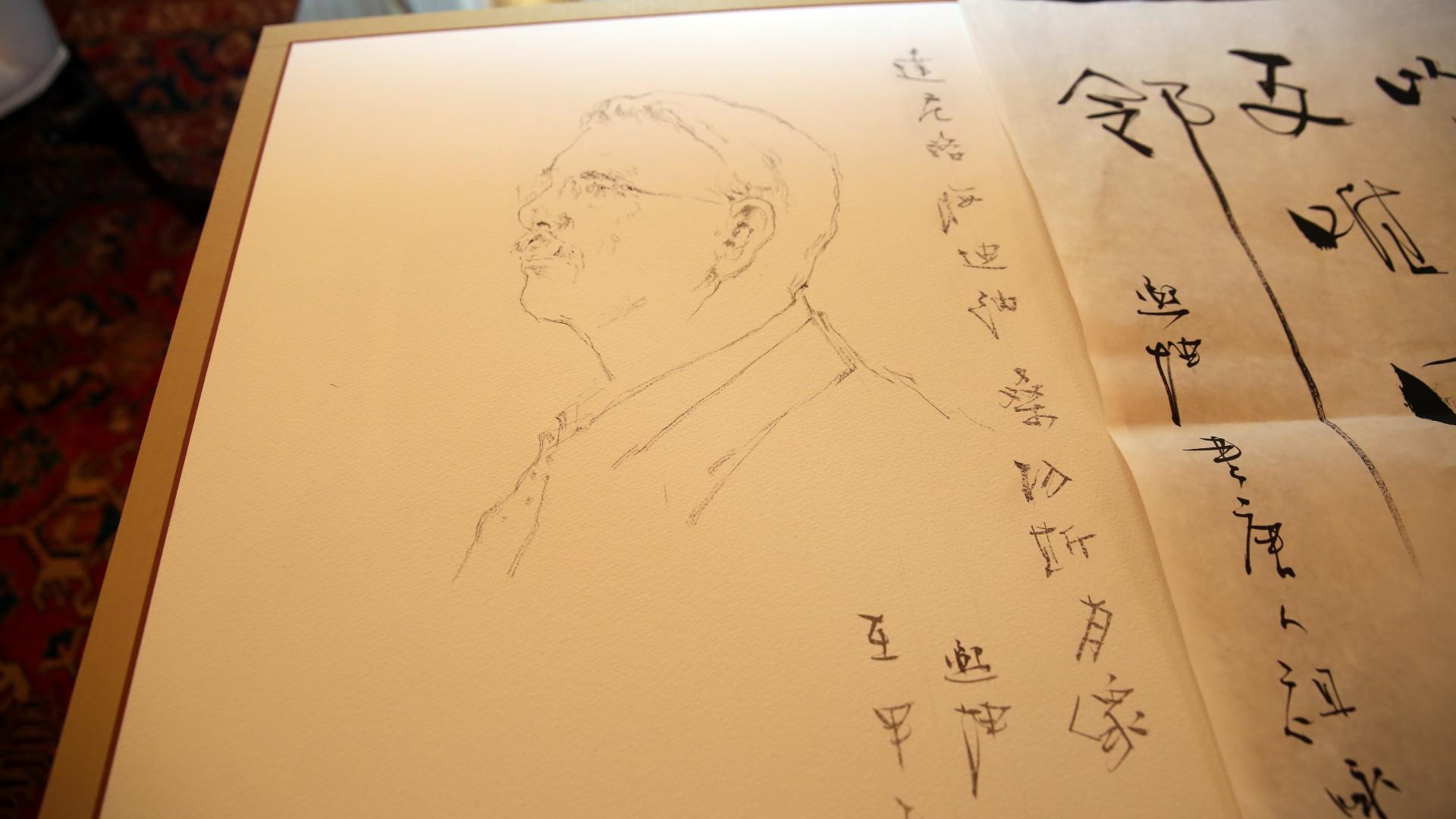 Retrato del Presidente de la República, Danilo Medina Sánchez, elaborado por el reputado escultor y pintor, Yuan Xikun, entregado al mandatario durante visita de cortesía efectuada hoy en el Palacio Nacional.