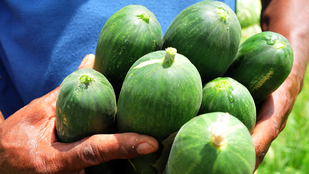 Muestra de la cosecha de pepinos producida por integrantes de la Asociación Productores Agrícola Los olvidados, de la comunidad de Palenque, San Cristóbal, lo cual representa el logro y esperanza de mejor calidad de vida para las familias de la zona.